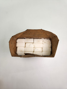 The second type of cooking fuel are solid flammable tablets. These rectangular tablets are essentially the same as German Esbit fuel tabs used by the Wehrmacht. Sixteen fuel tablets are wrapped in a dark wax paper and packed into a beige wax paper box. Included in the box is a thin strip of flexible aluminum to allow for the burning of the fuel tablets. Like the cooking cans, the boxes contain cooking instructions, but are intended to only cook a single mess kit. These tablets are extremely rare, and not often seen, even in Japanese texts.